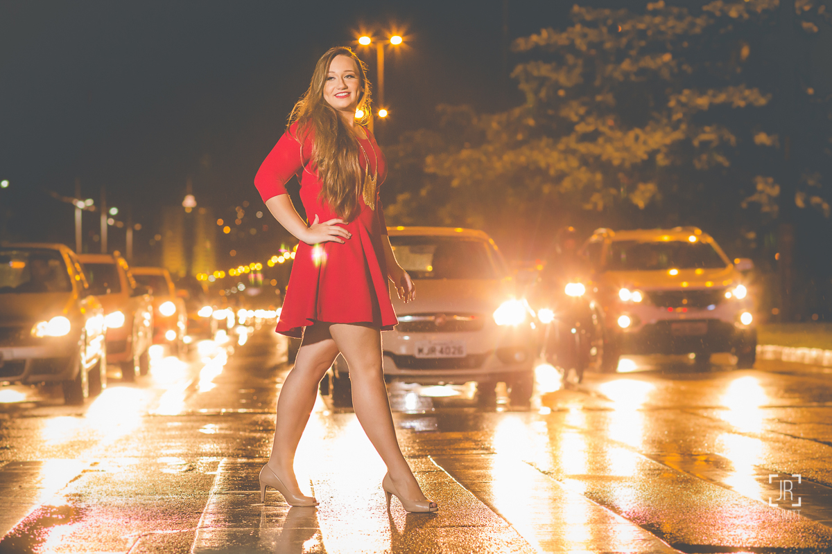 16hs, Rafa pronta, linda e produzida, cai o maior temporal na cidade, e agora? "-Vamos fotografar na chuva mesmo, mas não, logo nas primeiras fotos, vai acabar com o cabelo..." Ok! Floripa é assim mesmo, o tempo é imprevisível rsrsrs, esperamos um pouco, o tempo começou a melhorar, até que parou de chover e já era noite, ok! Vamos começar a sessão pelas fotos que sempre fazemos no final do ensaio, depois remarcamos mais uma tarde para terminar as fotos, e assim foi, na terça-feira a Rafa já estava até mais à vontade diante das câmeras, com seu jeitinho de menina foi nos cativando, e o resultado ficou incrível!!! Confira.